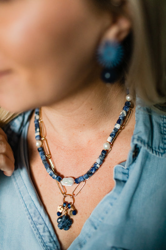 Floral earrings on 14kt gold and sterling wires in blue or cream