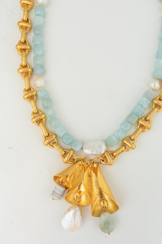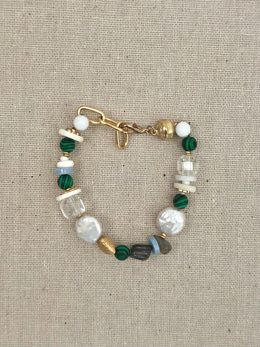 Side slip clasp colorful quartz and freshwater pearl necklace (one of a kind) with sterling silver and 14kt gold